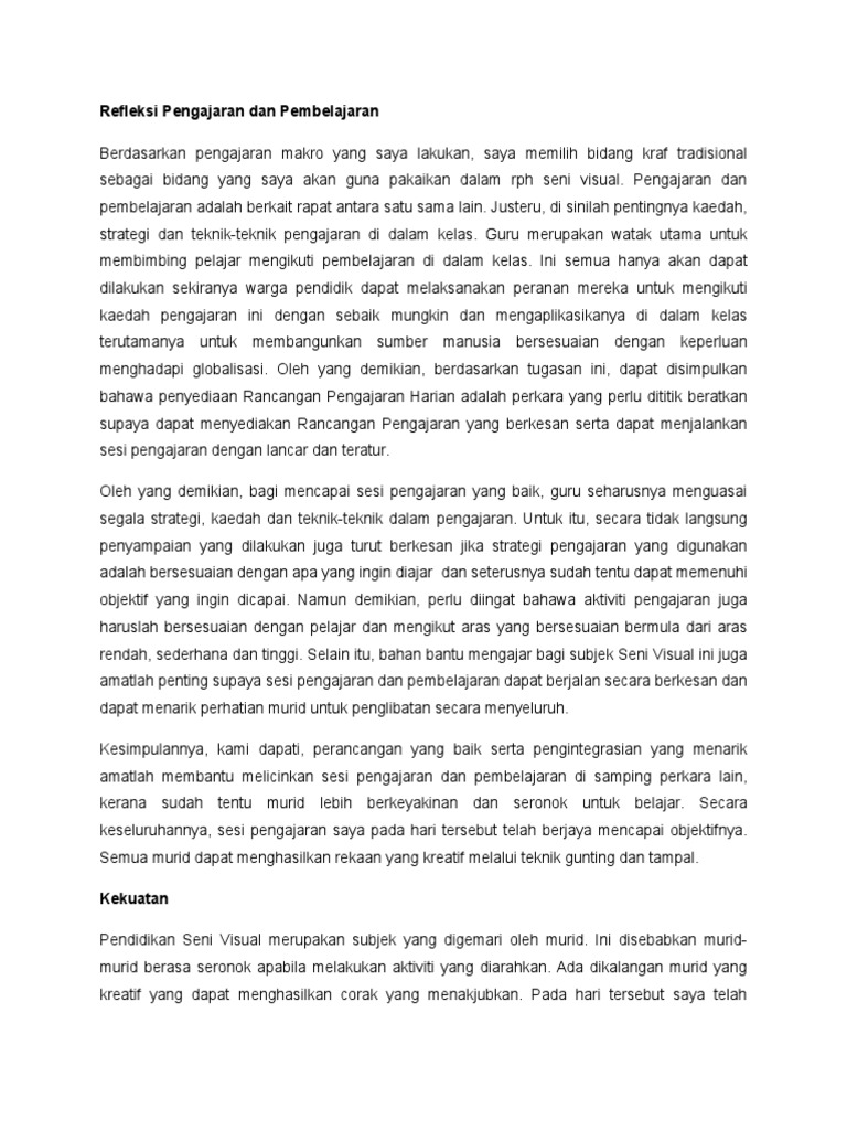 Refleksi Pengajaran Dan Pembelajaran Pdf