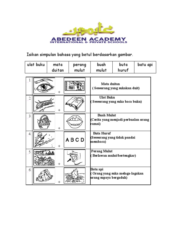 Latihan Tahun 5 Simpulan Bahasa 2 Interactive Worksheet Topworksheets