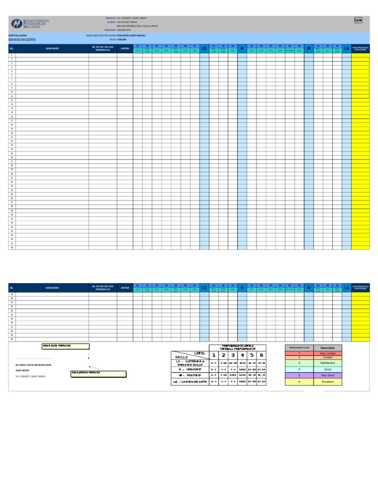 Templat Pelaporan Pentaksiran Bilik Darjah Pbd Tahun 6